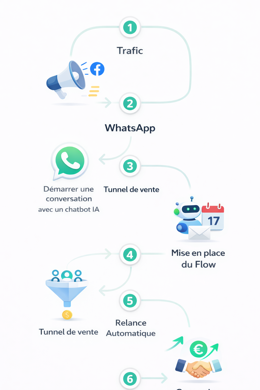 Tout le parcours est pensé pour transformer ces prospects en clients, de manière fluide et automatisée.